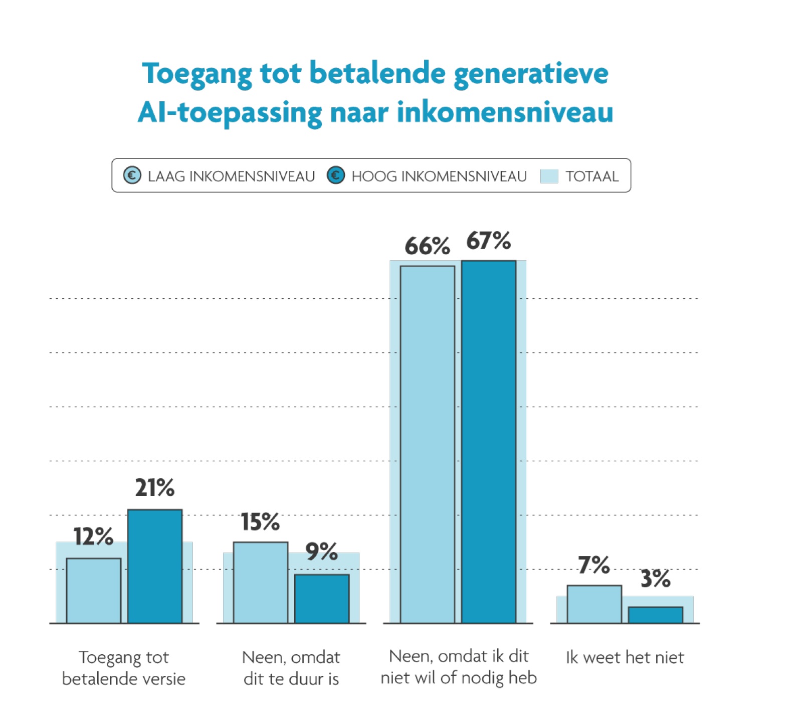 Bien que les plateformes d’IA générative disposent d’une version gratuite décente, de plus en plus de Flamands se tournent vers un accès premium payant. Il s’agit même d’un doublement (15 %) par rapport à l’année dernière, avec une différence importante selon le niveau de revenus.